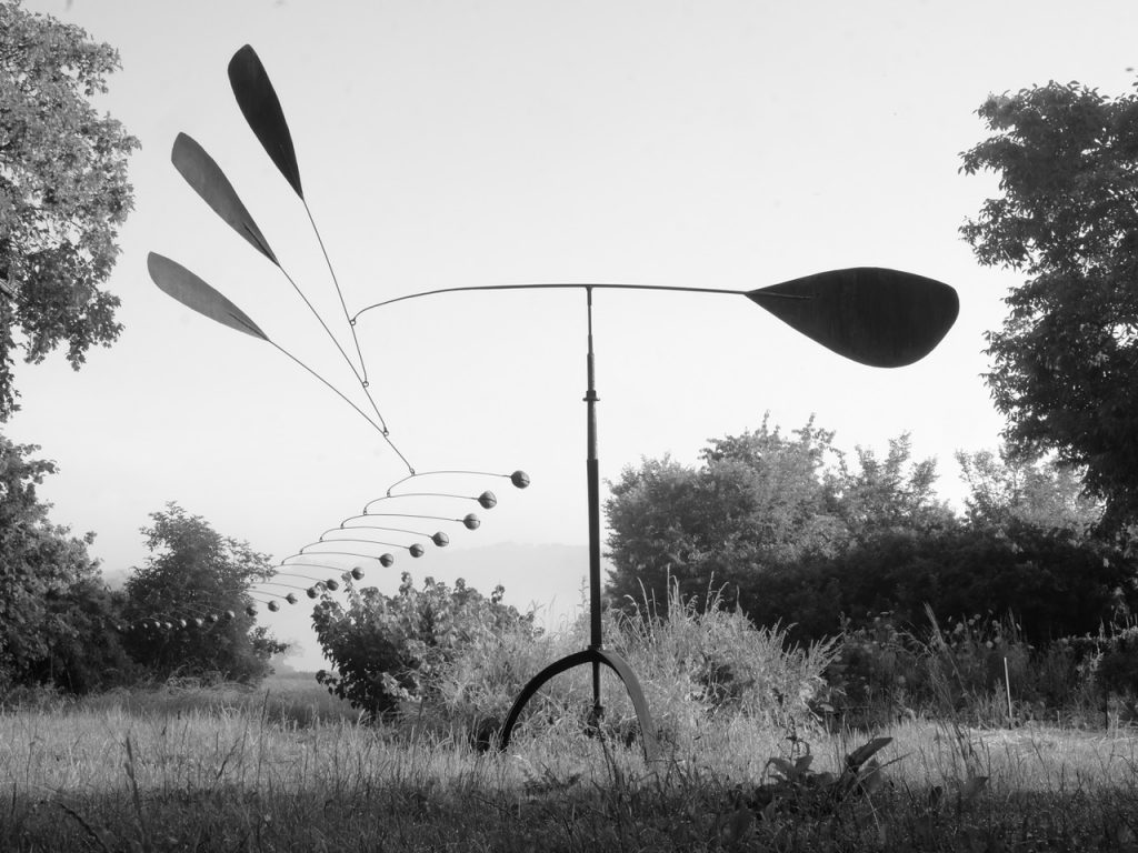 Ces sculptures mobiles qui bougent au gré du vent captent l’attention par la permanence de leur mouvement. Cette mobilité constante ajoute aux trois dimensions spatiales habituelles de la sculpture, une quatrième dimension qui est celle du temps.