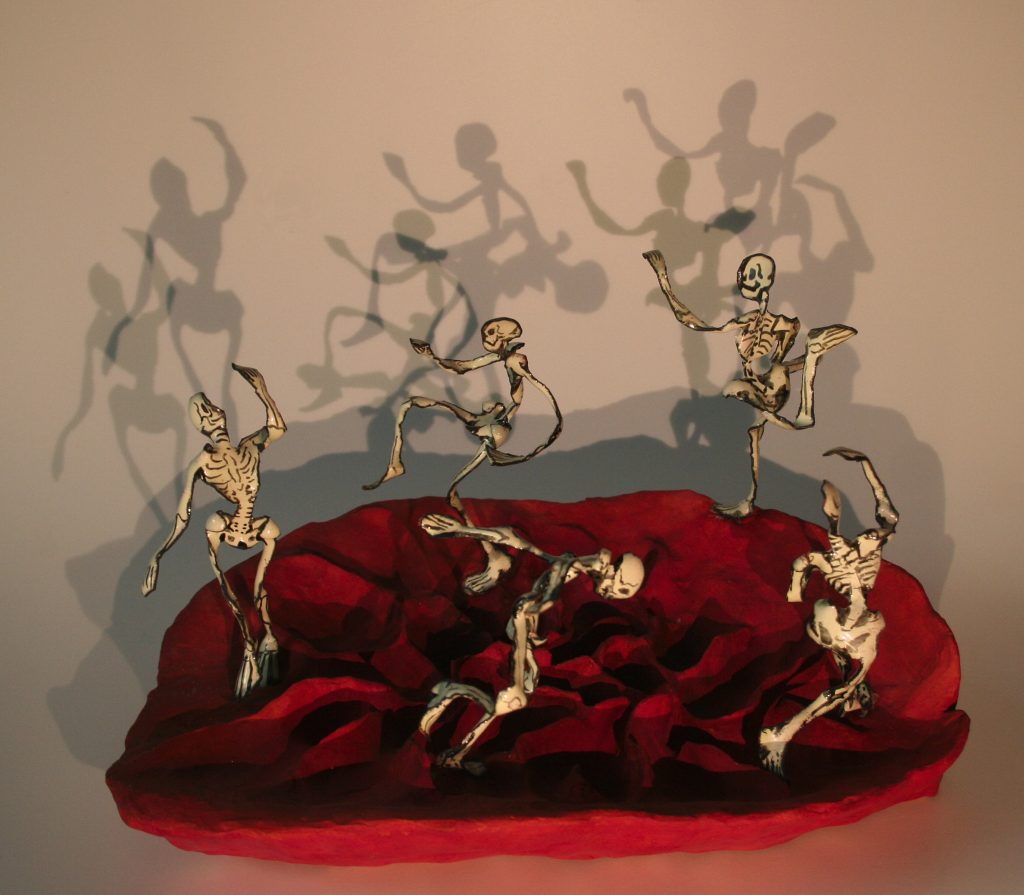 La diversité des sculptures et figures aux formes volubiles de la plasticienne Sabine André-Donnot (arbres, personnages, chimères sur pied ou perchées) manifeste autant une approche syncrétique de mythes animistes ancestraux qu’une fantasmagorie personnelle. Les compositions jouent avec humour mais révérence de ces détournements dans une jubilation des formes où l’évidence du féminin s’exprime avec énergie et grâce.