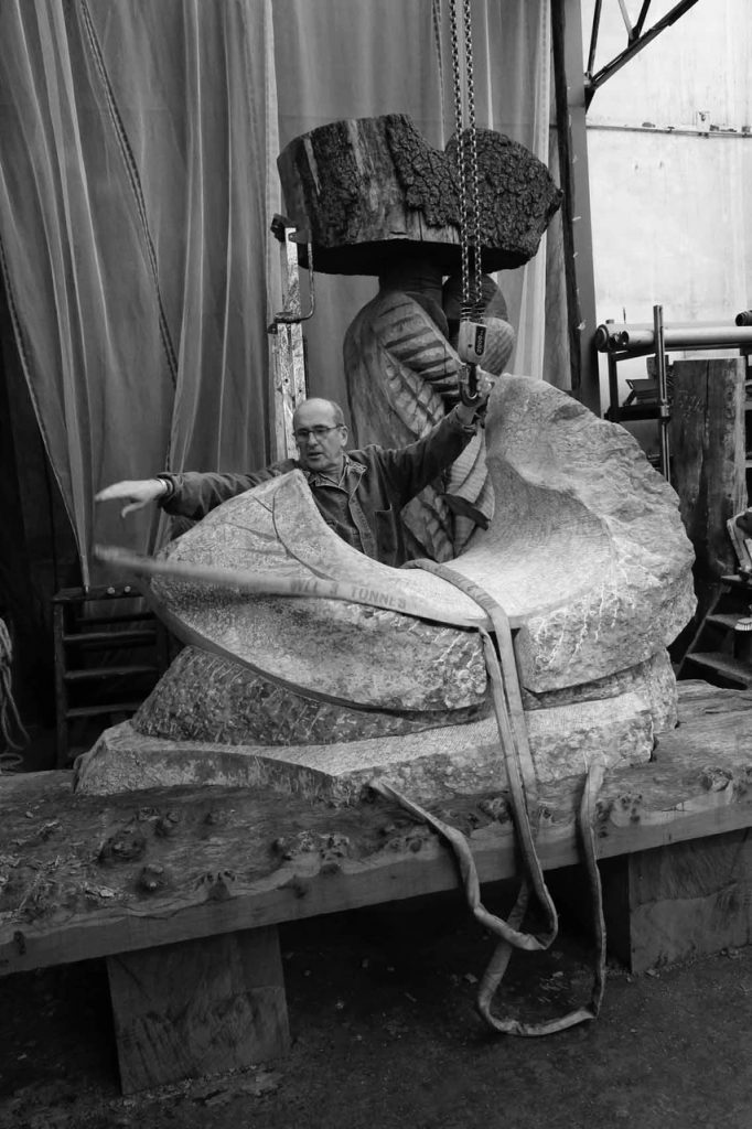 Mon activité de sculpteur se partage entre mon travail à l’atelier et mon travail dans la nature.